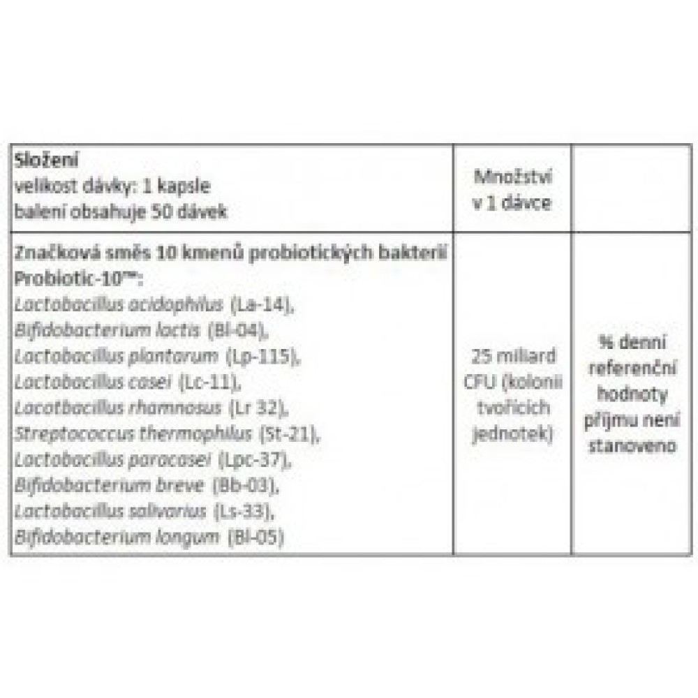Specification NOW Probiotic-10, probiotika, 25 miliard 50 kapsul Now foods