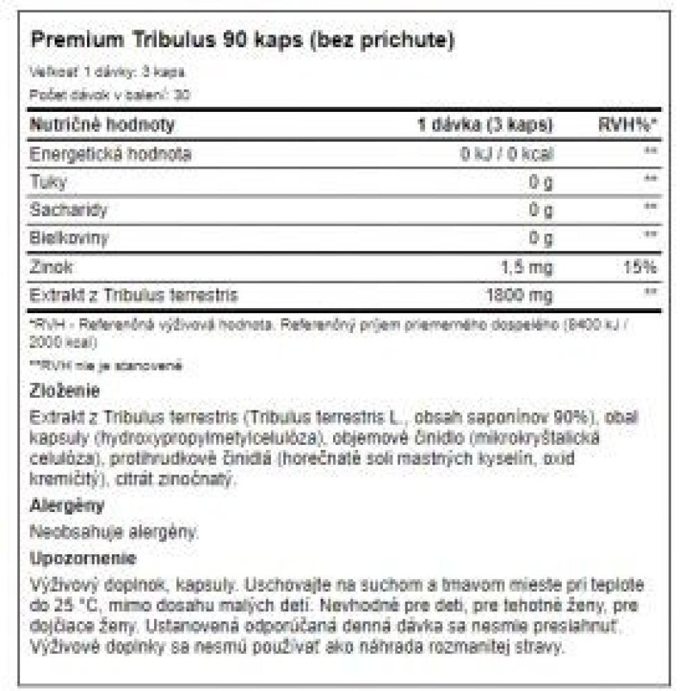 Specification Weider - Premium Tribulus 90 kaps Weider